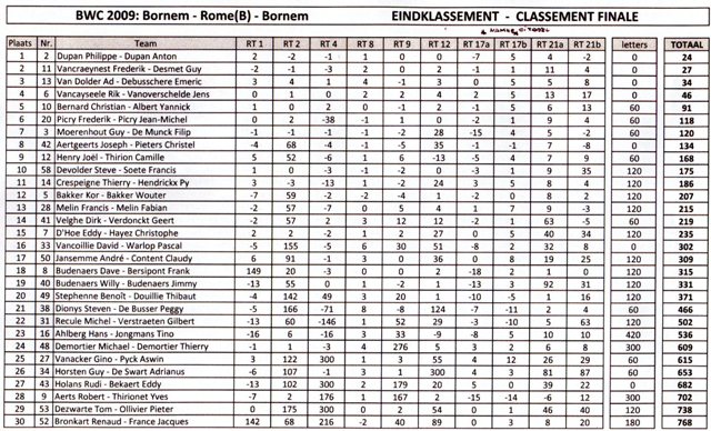 Uitslag van de slopende marathon van de Bornem-Rome-Bornem 2009 een 3de plaats gehaald. Er waren 70 deelnemers aan de start